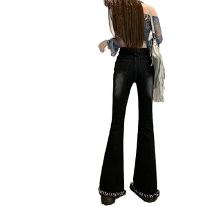 黑灰色微喇牛仔裤女夏季广州货源高腰大码胖mm梨形身材毛边喇叭裤