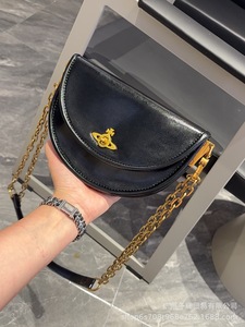 ニッチ土星スモールスクエアバッグ半円ロックサドルバッグ2025新作シングルショルダー斜め脇チェーンバッグ
