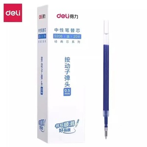 得力按动中性笔芯替芯墨蓝黑签字笔0.5子弹头速干大容量笔芯批发