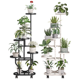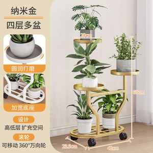フラワーシェルフリビングルーム床置きバルコニー収納ラック屋外中庭多肉植物鉄植木鉢ブラケットローラー棚付き