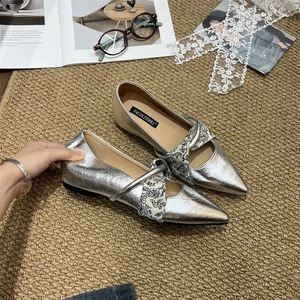 浅口尖头平底芭蕾舞鞋女法式一脚蹬平底内增高百搭复古单鞋