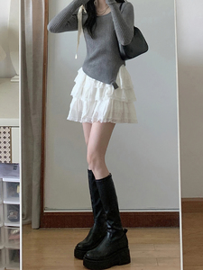 ホワイトレースふわふわケーキスカート女性の夏の新しいスタイルファットガールmmハイウエストカバー股痩身aラインスカート