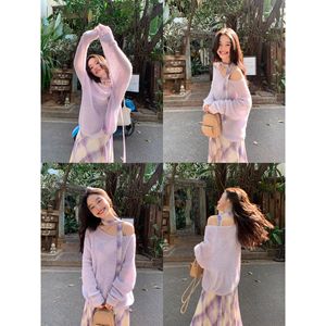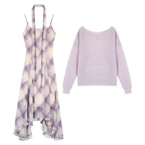 品質!甘い不規則な菱形サスペンダードレス薄い日焼け止めニットブラウス夏の新しいスタイルの女性