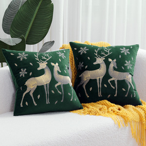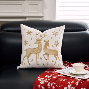 ヘラジカのクリスマスツリーブロンズ枕カバー、秋冬スノーフレーク刺繍クッションカバー45*45、クロスボーダーホットセール