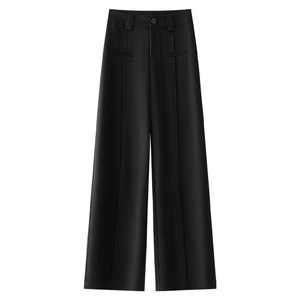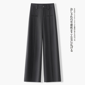 女性用のハイエンドグレーワイドレッグパンツ、2025年春秋の新しいハイウエストルーズドレープスリムカジュアルフロアレングスストレートパンツ