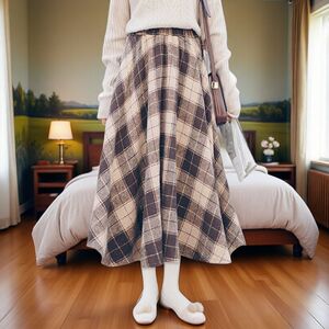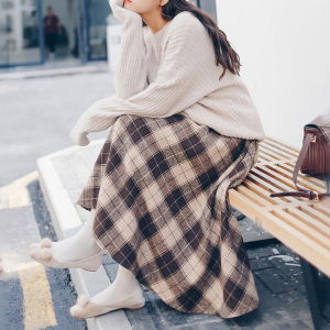 美式复古高腰显瘦撞色格纹半身裙秋冬氛围气质百搭减龄休闲中长裙