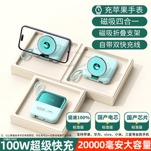 新款100W快充50000毫安大容量磁吸充电宝自带线小巧无线充适用苹