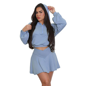 CY901891 ヨーロッパとアメリカの貿易無地スーツファッショナブルなカジュアルスポーツウェアツーピーススカートとパーカー女性用