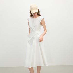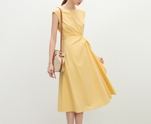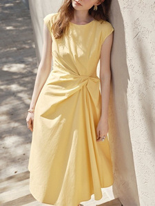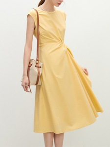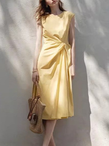 黄色のノースリーブツイストウエストドレス女性の夏の2025新しい小さなスカート2300