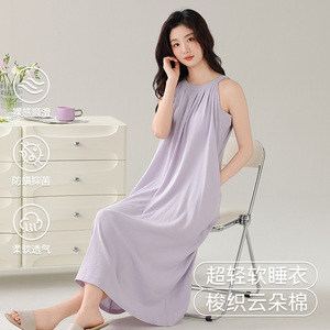 2025年新款夏季睡裙女带胸垫云朵棉连衣长裙夏款甜美睡衣裙子宽松