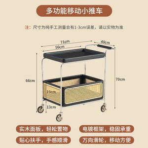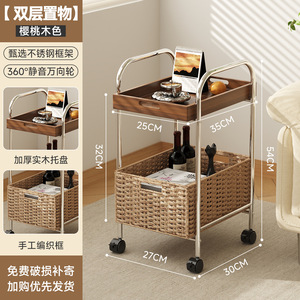 無垢材レトロトロリーサイドテーブル可動コーヒーテーブルリビングルームソファ収納ラックスナック収納ラック中古籐