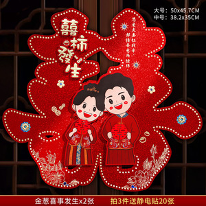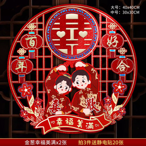 ハッピーワードステッカー、結婚式のドアと窓のステッカー、結婚式の部屋のレイアウト、寝室のドアの装飾、結婚式用品