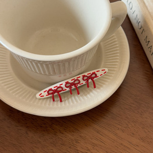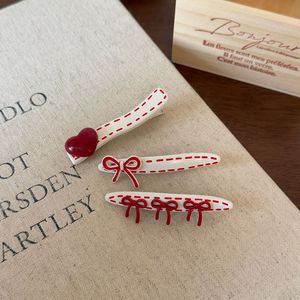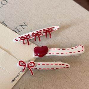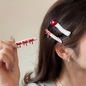 韓国風赤リボン水玉ヘアピン、甘くて可愛い前髪クリップ、ヘアクリップ、シンプルで細長いカモノハシクリップ