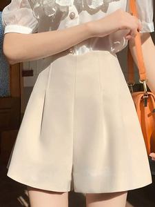ハイウエストブラックスーツショーツ女性のための夏の2025新しいaライン女性のパンツワイドレッグ多用途ファッションショーツ痩身