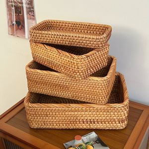 インレトロ籐収納バスケットデスクトップコーヒーテーブル雑貨収納バスケット化粧品収納バスケット竹バスケット