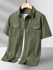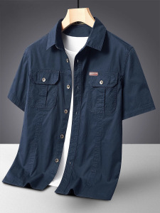 アメリカンワークウェアトレンディカジュアル半袖シャツメンズ2025夏の新ファッションマルチポケットシャツジャケット