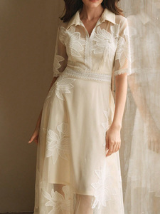 2025年クロスボーダーヨーロッパ、アメリカ、中東対外貿易婦人服春夏レースチェック柄中空レーススポット卸売ドレス