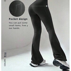 クロスボーダーサイドポケット付きピーチフレアパンツフィットネスロングパンツワイドレッグハイウエストヒップアップ着痩せヨガパンツ春夏微フレアパンツ