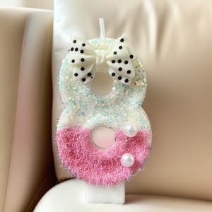 クリエイティブピンクパールリボンデジタルキャンドル誕生日キャンドルケーキ雰囲気誕生日装飾キャンドルプラグイン