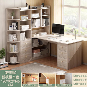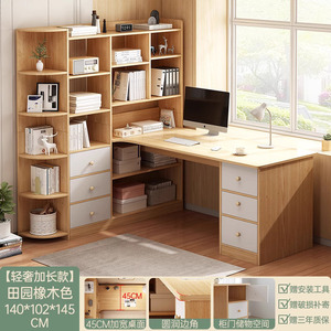 书桌书架一体转角电脑桌卧室家用学生写字桌L型书柜组合拐角桌子