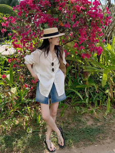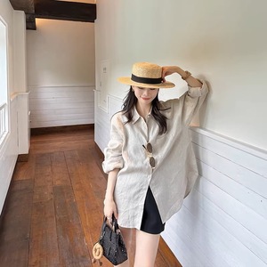 ホワイト 100 リネンシャツ 2025 夏韓国スタイルルーズ長袖日焼け止めシャツシックなトップトレンディ