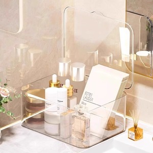 翻盖式桌面收纳盒透明亚克力防尘整理盒卧室宿舍办公室带盖收纳筐