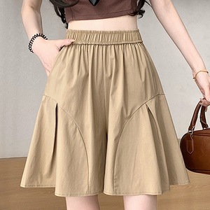 アイスシルク カーゴショーツ レディース 夏 薄手 小柄 伸縮性 ハイウエスト 痩身 ゆったり Aライン 5点ワイドレッグパンツ