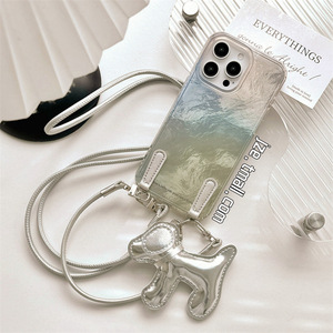 iPhone15promax Apple 16 携帯電話ケース 14 ハイエンド 13 女性に適した電気メッキシルバー子犬クロスボディストラップ