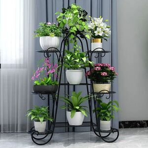 M フラワーシェルフ多層リビングルームバルコニーホームヨーロピアンスタイルフラワーシェルフ屋内中庭床置き収納アイアンポトス植木鉢 L