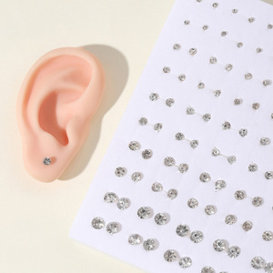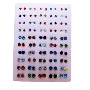 50对简约海绵包装大小混尺寸胶针莱茵石水钻耳钉饰品套装批镶嵌