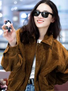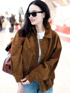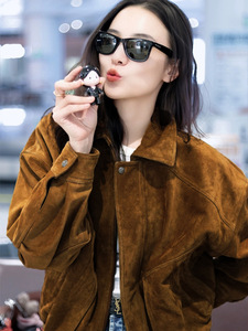4187-1 本革ジャケット秋と冬の新スタイル Song Jia 同じスタイルのシープスキンスエードラペルジャケットレザージャケット女性のルーズ