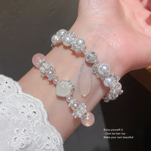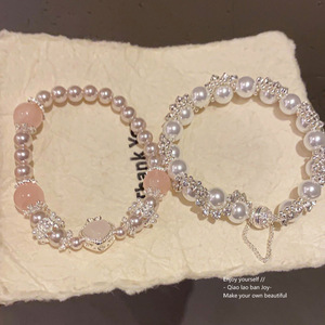 パールローズクォーツビーズラブストレッチブレスレット、甘くて新鮮でエレガントなブレスレット、女性向けの多用途でファッショナブルでハイエンドのブレスレット
