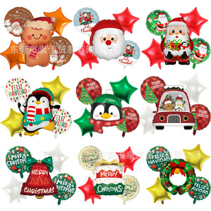 跨境热销圣诞套装系列铝膜气球儿童卡通圣诞节现场氛围装饰布置