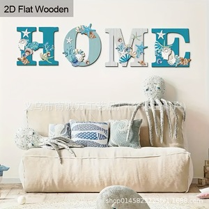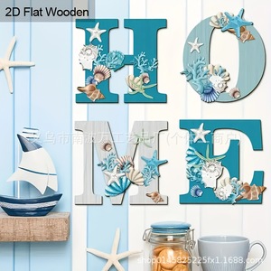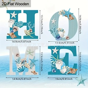 4 ピース夏ブルーホームレターシェルコンクヒトデ木製壁アート誕生日ギフト装飾タグ
