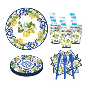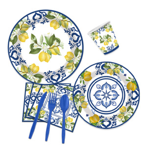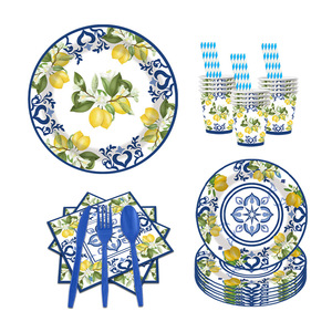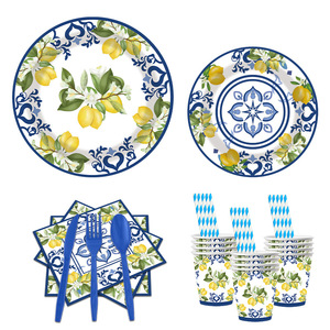 新款柠檬水果派对用品节日装饰宝宝洗礼聚会布置纸盘纸杯餐具套装