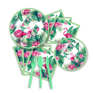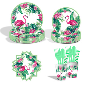 国境を越えたスポットハワイアンフラミンゴテーマ使い捨て紙皿と紙コップ漫画パーティー装飾セット卸売