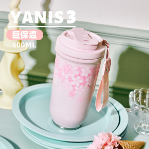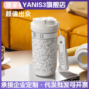 Yanis3 の女性用コーヒーカップ、見栄えの良いダブルドリンク断熱カップ、ギフト用の大容量ポータブル車用ストローカップ