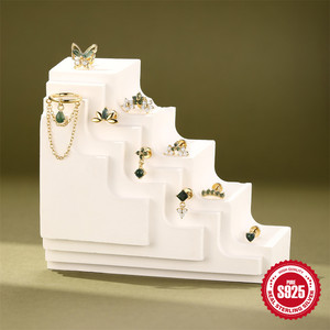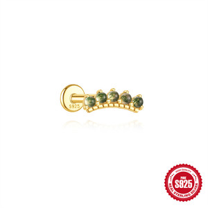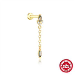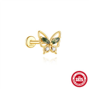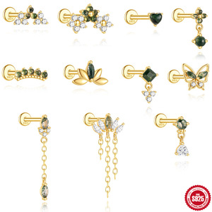 s925几何时尚天然绿苔藓石耳骨钉女水草玛瑙独特穿刺花朵蝴蝶耳饰