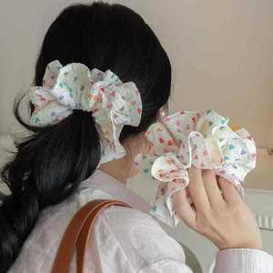 韓国風プリーツカラフルラブバブルヘアバンドスウィートガールヘッドフラワー春夏フレッシュポニーテールヘアアクセサリー