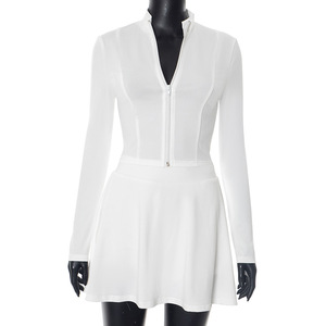 D25ST234 ヨーロッパとアメリカのクロスボーダーレディース春夏無地スタンドカラー長袖ジッパーカーディガンハイウエストプリーツスカートスーツ