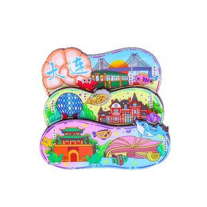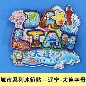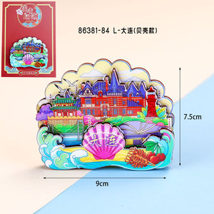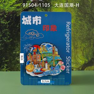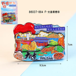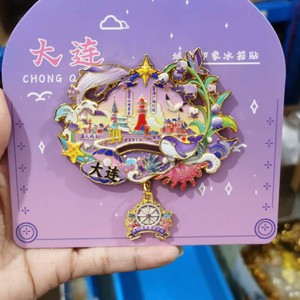 大連合金冷蔵庫マグネット、文化的で創造的な国民的トレンドのお土産、大連市のランドマークチェックイン旅行のお土産冷蔵庫マグネット