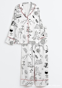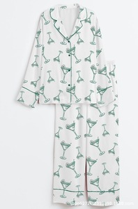 ヨーロッパとアメリカのファッションプリント夏クロスボーダーカジュアルホームウェアラペル長袖パジャマセットPODワンピースカスタマイズ