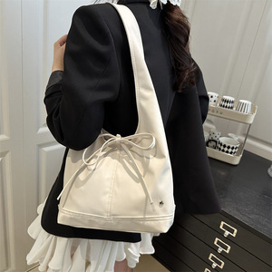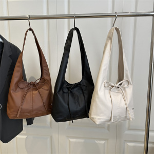 2025 新しいニッチレディースバッグ多用途フレンチスタイルリボン大容量ショルダーバッグ脇の下バッグシンプルなトートバッグ