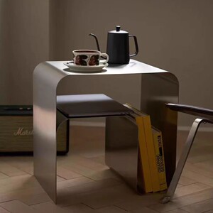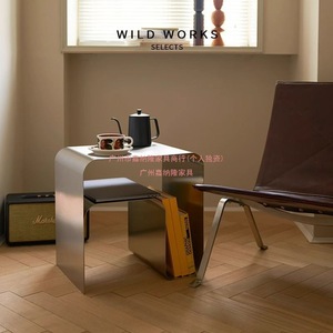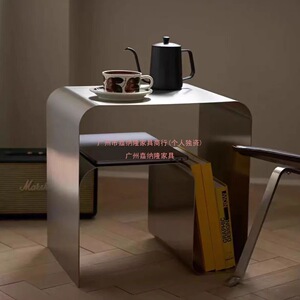 边几中古极简不锈钢床头柜边几一体成型置物柜轻奢茶几包豪斯边几