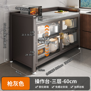 K09-60三层-枪灰【长60宽42高85】-钢化玻璃-层高可调