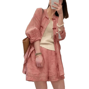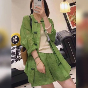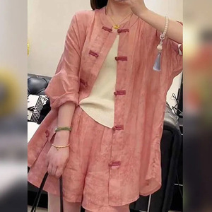 シングルピース/2025 夏の新ファッション多用途痩身ルーズバックルレトロ中国年齢軽減日焼け止めシャツショーツ
