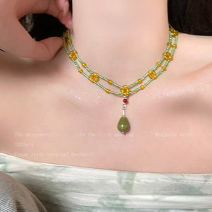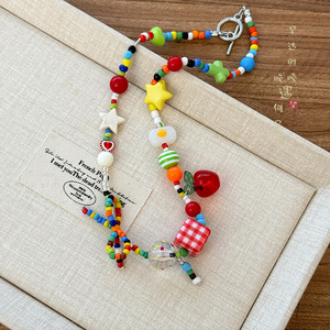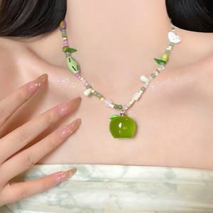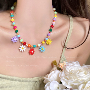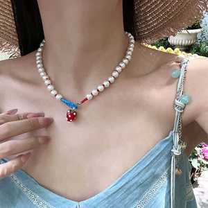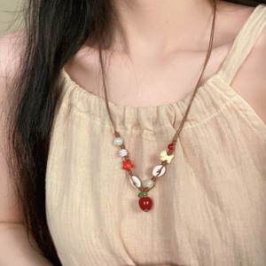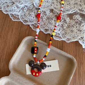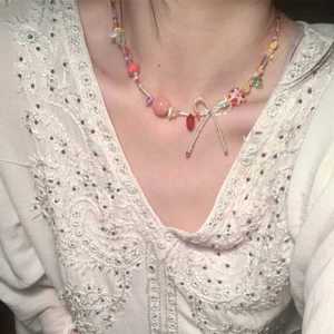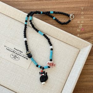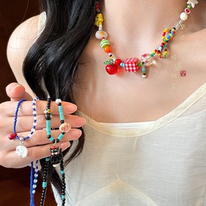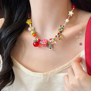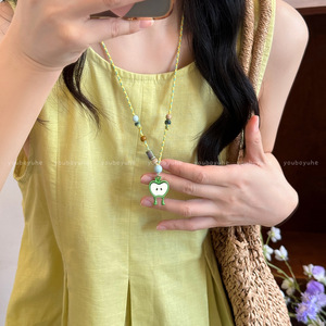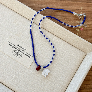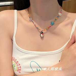 ドーパミン漫画象と子猫ビーズネックレス女性のための夏に適したかわいいニッチ鎖骨チェーンアクセサリー