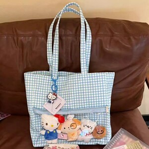 日系二次元吧唧痛包娃包2025新款蓝色波点单肩包可爱大容量托特包