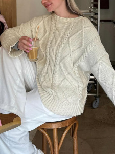 ヨーロッパとアメリカの新しい初秋の厚いウールツイストセーター女性のプルオーバーレトロルーズレイジースタイルアウターウェア冬のトップ