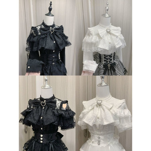 和風蝶ネクタイシャツサブカルキュート無地レース長袖半袖シャツ
